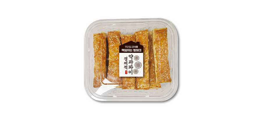 ‘경제적 베이커리’ 프로젝트의 두번째 제품인 ‘경제적 약과파이’는 약과 특유의 꾸덕한 식감과 파이의 바삭함을 접목한 이색 디저트이다. 먹기 좋은 스틱형 파이에 생강과 계피의 풍미가 느껴지는 달콤한 조청 코팅을 씌우고 그 위에 참깨를 올려 고소한 맛을 더했다.