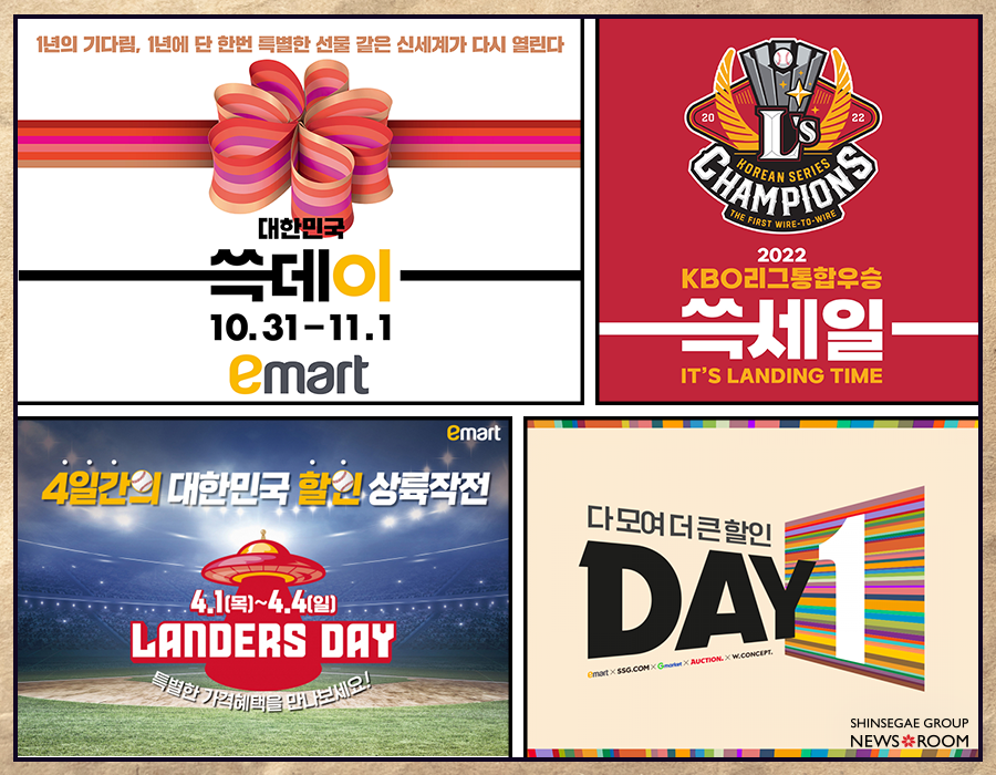 지난해에는 SSG랜더스의 KBO 리그 통합 우승을 기념해 대규모 할인행사 ‘쓱세일’을 열었다. 야구단 우승이라는 스토리가 결합된 이번 행사는 그 어느 때보다 뜨거운 관심을 받았다. 행사 기간에는 ‘오픈런’ 현상이 발생하는 등 전국의 이마트가 인산인해를 이뤘다. 계란, 삼겹살, 목살 등은 주요 매장에서 오전 중 동이 나기도 했다. 이마트는 3일간 매출을 계획 대비 140% 초과 달성했다.