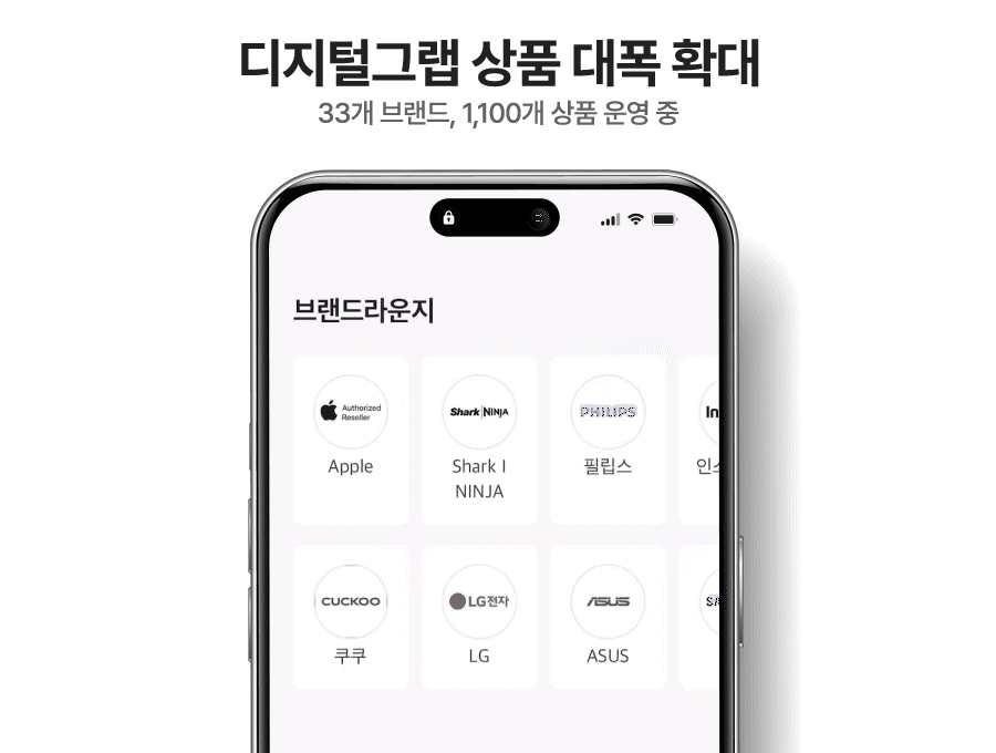 ✔️ 더 넓어질 디지털그랩: 작년 8월 론칭 때 7개 브랜드로 시작했는데, 5개월 만인 지금 벌써 33개 브랜드, 1,100개 상품으로 몸집을 불렸습니다. 성장은 계속됩니다. 올해부터는 커피메이커, 밥솥 같은 주방 가전, 드라이기, 청소기 같은 생활 가전까지 디지털그랩에서 구매 가능합니다. 개인화된 행사 운영에 배송 서비스도 준비 중이라니, 완벽한 쇼핑 파트너가 되는 건 시간 문제겠죠?