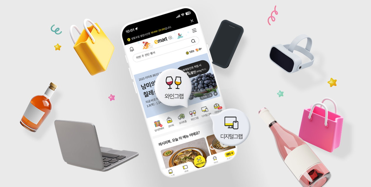 지난 8월에 새로 생긴 디지털그랩과 11월에 리뉴얼된 와인그랩, 대체 뭐가 그렇게 편하냐고요? 살짝만 훑어봐도 ‘이마트가 정말 작정을 했구나’ 싶을 정도입니다.