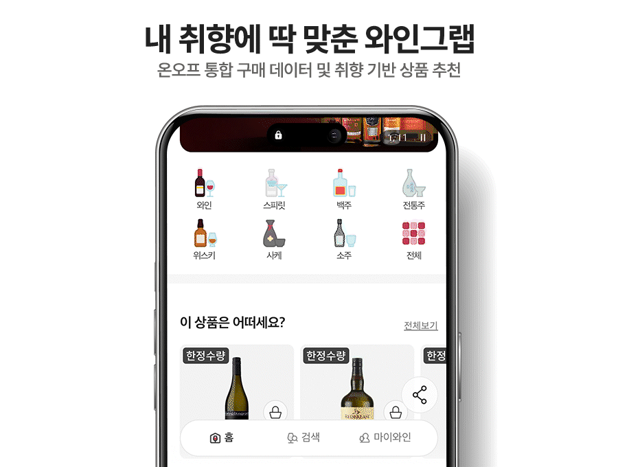 와인그랩은 리뉴얼 이후에 주류의 성지로 등극했습니다. 위스키 클리어런스 기획전, 이마트 단독와인 기획전에서는 각 2,000여 병의 판매고를 올렸죠. 특히 그 귀하다는 ‘김창수 위스키’를 와인그랩에서 단독 판매한 기획전은 단 22분 만에 준비한 물량이 모두 판매됐답니다.