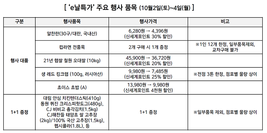 10월 2일(토)부터 4일(월)까지 3일간 진행되는 ‘e날 특가’ 행사도 풍성하다.