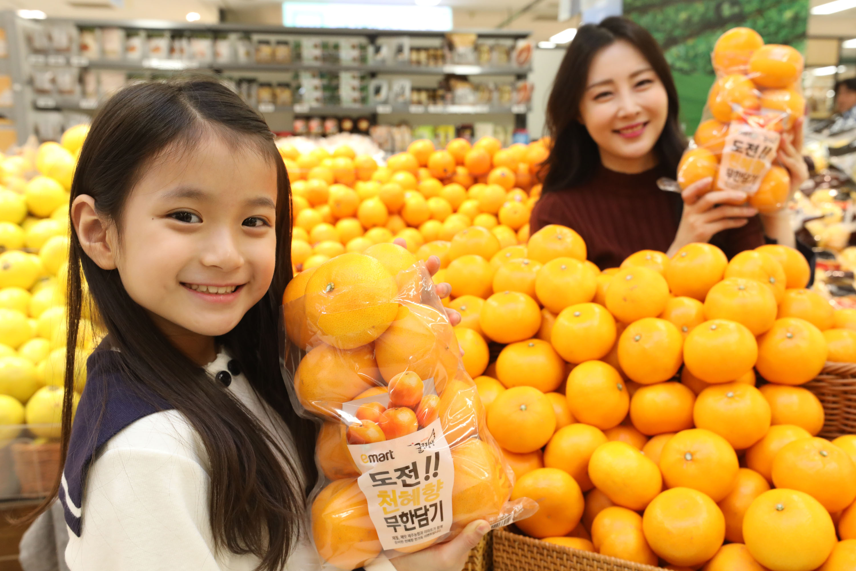 이마트가 고급 만감류의 대명사인 천혜향 제철(2~3월)을 맞아 ‘제주 천혜향 한가득 담아 만원’ 행사를 전점에서 열고 전년 동기 대비 반값으로 저렴하게 판매한다.