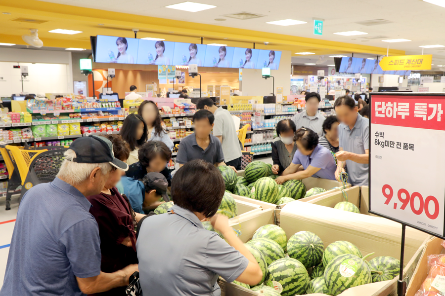 여름 대표 과일인 ‘수박’ 역시 10년 전보다 저렴하게 판매한다. 7/17일(목) 단하루, 이마트는 ‘파머스픽 씨가 적어 먹기 편한 수박(8kg미만)’을 정상가 대비 60% 할인한 9,900원에 판매한다.
