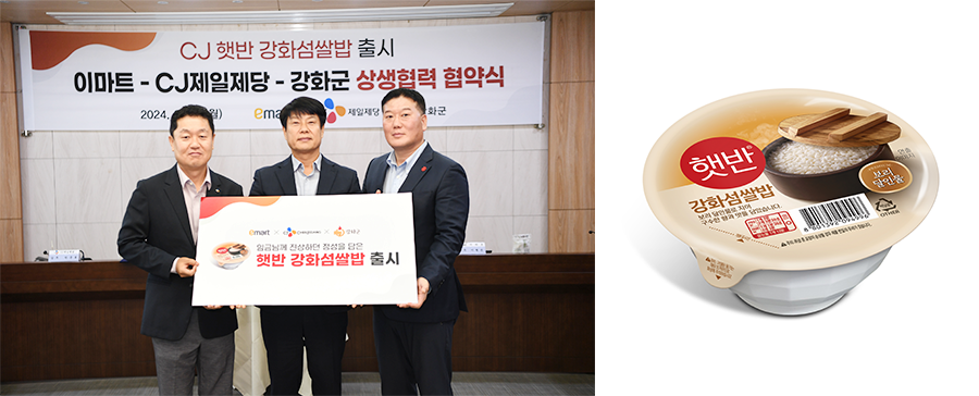 신제품 출시에 맞춰서 이마트는 26일 강화군청에서 강화군, CJ제일제당과 쌀 소비를 촉진하고 지역특산품인 강화도 섬 쌀의 우수성을 알리기 위해 3자 업무 협약을 체결했다.