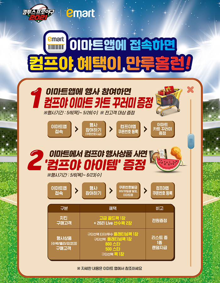 이마트가 컴투스의 인기 모바일 야구 게임인 ‘컴투스프로야구2021(이하 컴프야2021)’과 손 잡고 이색 마케팅을 펼친다.