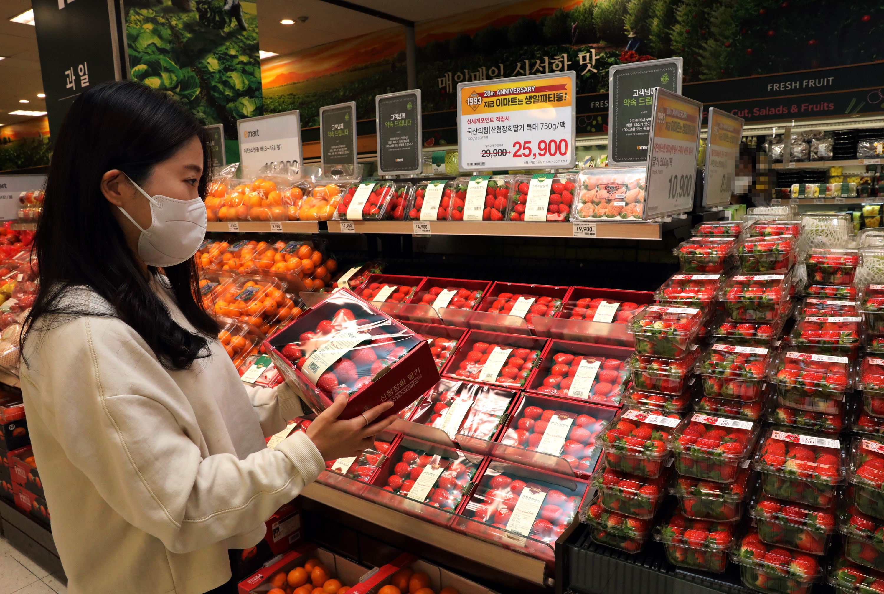 MEDIA 글자 크기 보통 크게 아주 크게 공유하기 페이스북 X 카카오톡 링크 복사 링크 복사됨 도구 보기 이미지 다운로드 이마트, 품종 다양화로 그로서리 경쟁력 강화, 비타베리, 아삭달콤, 하얀딸기 새로 선보이고 전품목 할인 2021.11.29 이마트