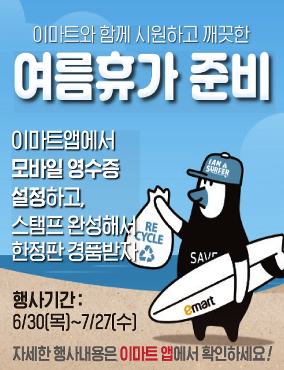 MEDIA 글자 크기 보통 크게 아주 크게 공유하기 페이스북 X 카카오톡 링크 복사 링크 복사됨 도구 보기 이미지 다운로드 이마트, 친환경 한정판 상품 증정행사 펼쳐 2022.07.05 이마트