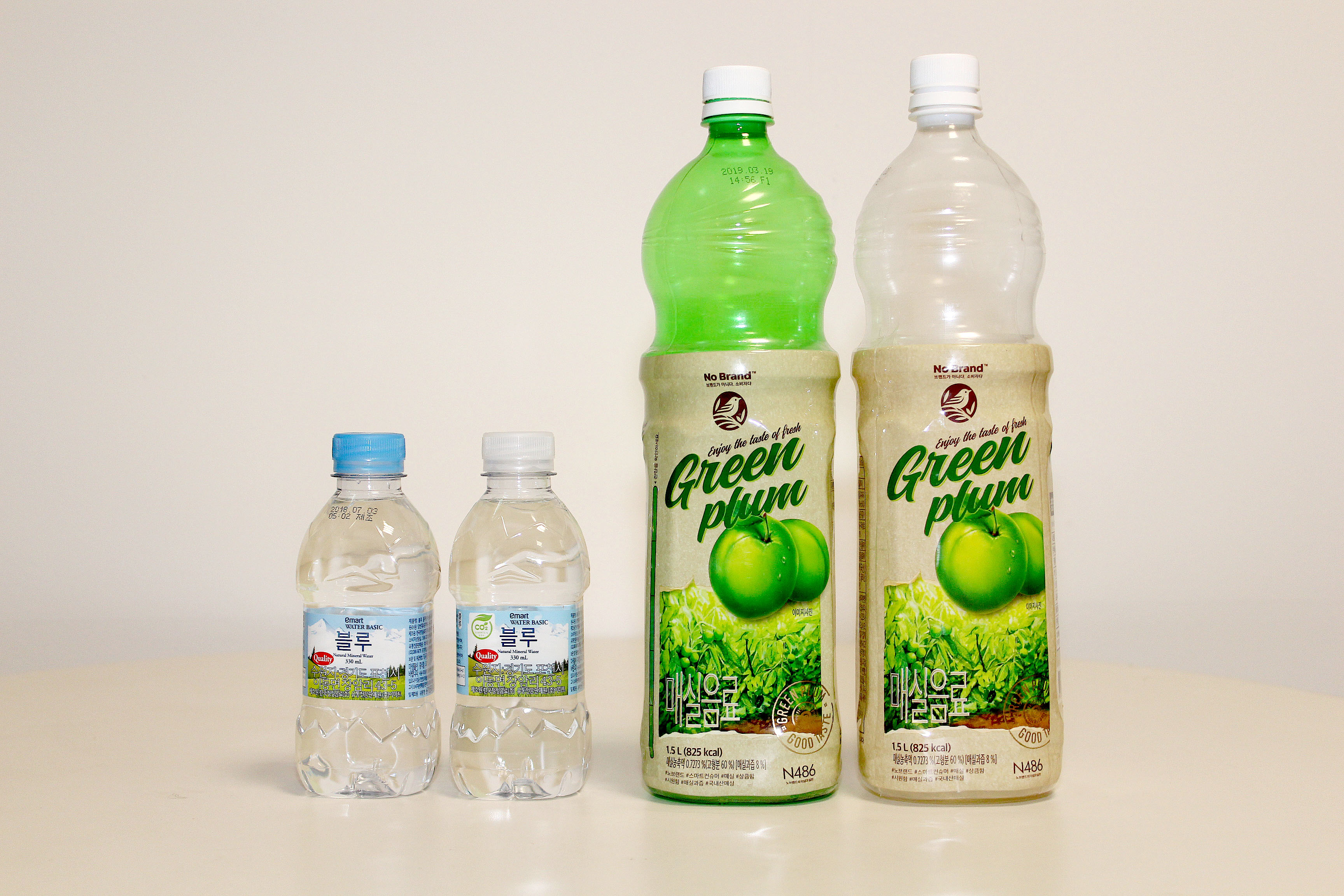 지난해 기준 2천만병 이상이 판매된 ‘이마트 블루’는 이번 패키지 변경을 통해 기존의 파란색 뚜껑 대신 무색 뚜껑으로 바뀐다. 매실을 연상시키는 초록색을 고집하던 ‘노브랜드 매실’은 ‘무색’ 페트병으로 바뀐다.