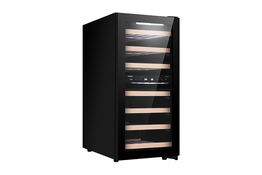 홈술·혼술족들을 위해 공간은 크게 차지하지 않는 소형 사이즈임에도 750ml 와인 기준으로는 최대 약 30병 내외 수준까지 들어가며, 상/하단 보관 온도를 별도로 세팅할 수 있는 듀얼 온도 조절 기능이 있어 상단에는 화이트 와인, 하단에는 레드 와인 등 별도 보관도 가능하다.