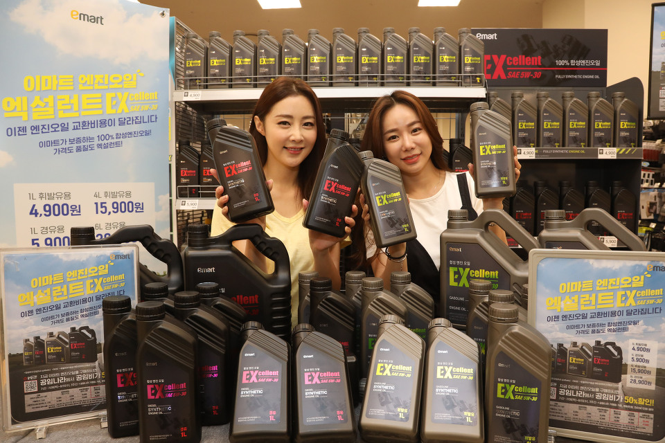 이마트는 ‘이마트 엔진오일 엑설런트’ 휘발유용 1리터/4리터(4,900원/15,900원), 경유용 1리터/6리터(5,900원/28,900원) 4종을 출시하고 자동차 정비 전문업체 ‘공임나라’와 연계해 공임비 50% 할인 이벤트를 선보인다.