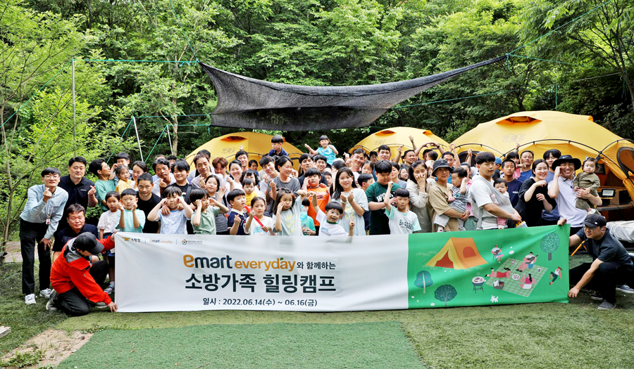 ‘소방공무원 가족 힐링캠프’는 6월 14일부터 16일까지 2박 3일간, 충북 괴산군에 위치한 ‘코오롱 스포츠캠핑파크’에서 진행됐다. 이마트에브리데이가 소방청, 대한민국재향소방동우회와 협력해 모집한 소방공무원 50 가족이 참여했다. 이마트에브리데이가 캠핑장 이용 및 숙박/취사용품 일체, 캠핑용 먹거리, 레크리에이션 프로그램 등을 제공했다.