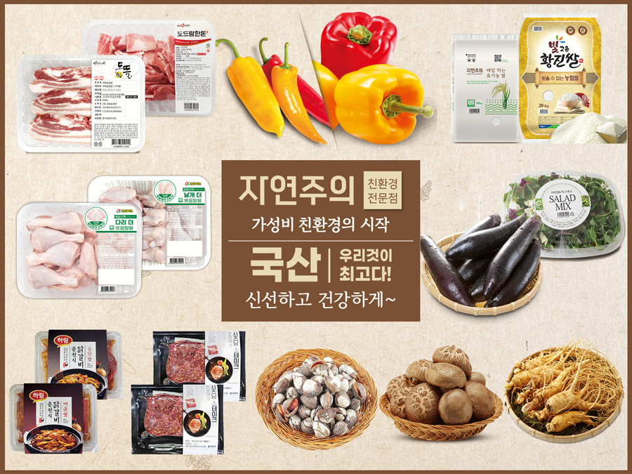자연주의 무항생제 패밀리팩 볶음탕용닭 1.2kg(국내산) 9,900원, 한돈 구이용 오겹살 600g 17,900원, 백제금산 인삼 500g 19,800원 등 건강한 가족모임 식단용 재료들을 합리적인 가격에 선보인다. 제철을 맞은 벌교 새꼬막(500g, 4,980원), 봄 햇표고버섯(400g, 4,980원) 등도 준비했다.