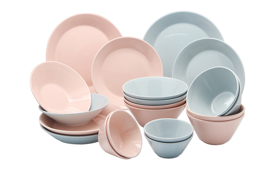 뉴본 식기 세트는 밥공기 4입, 국공기 4입, 소스볼 4입, 디저트볼 2입, 소형 접시 4입, 대형 접시 2입으로 이뤄진 식기 세트로 핑크와 블루 두 가지 색상으로 구성했다. 흙에 소뼈가루를 섞어 만든 ‘뉴본’ 소재의 도자기 식기로, 대표적인 도자기 소재 ‘본차이나’와 질감이 유사하다. 일반 도자기 소재에 비해 무게가 가벼운 것이 특징이다.