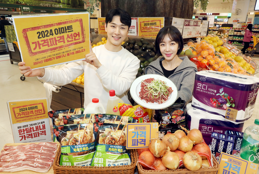 가격파격 선언은 이마트가 2024년을 시작하며 월별로 식품 3대 핵심상품과 가공, 일상용품 40개 상품을 선정해 한 달 내내 최저가 수준에 제공하는 새 가격 정책이다.