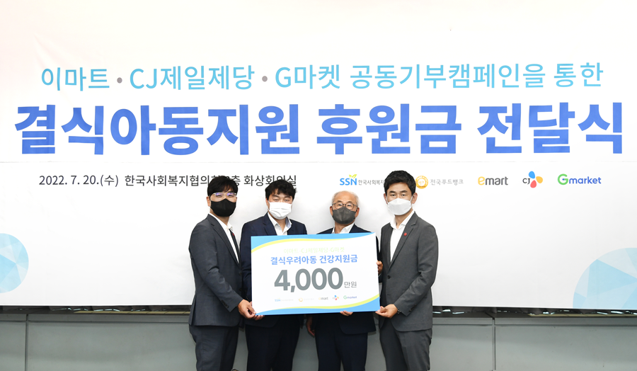 이마트와 G마켓이 CJ제일제당과 손잡고 결식아동 후원금 총 4,000만원을 기부했다.