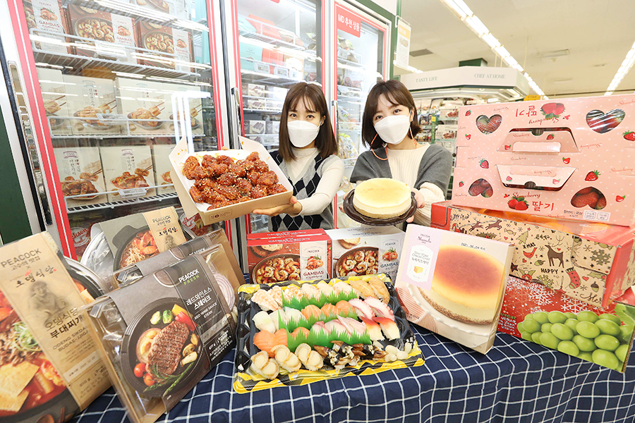 대표적으로 연말 모임의 빈자리를 대체할 수 있는 홈파티용 ‘피코크 먹거리’를 행사카드 결제 시 20% 할인된 가격에 구매할 수 있다. ‘피코크 잭슨피자 시카고 페퍼로니(535g)’와 ‘피코크 감바스(280g)’를 각 6,384원에, ‘피코크 레드와인소스 스테이크’를 14,240원에, ‘피코크 마몰로 뉴욕 치즈케익(440g)’을 7,984원에 준비했다.