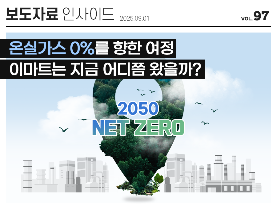 이마트의 넷제로(Net Zero)* 선언은 이제 구호가 아닌, 매해 수치와 전략으로 증명되는 ‘기록’이 되었다. 지난 7월 이마트는 2024년 한해의 온실가스 감축 이행 성과와 전략을 담은 「2050 NET ZERO REPORT」를 공개했다. 넷제로 선언 이후 발간된 세 번째 보고서다.