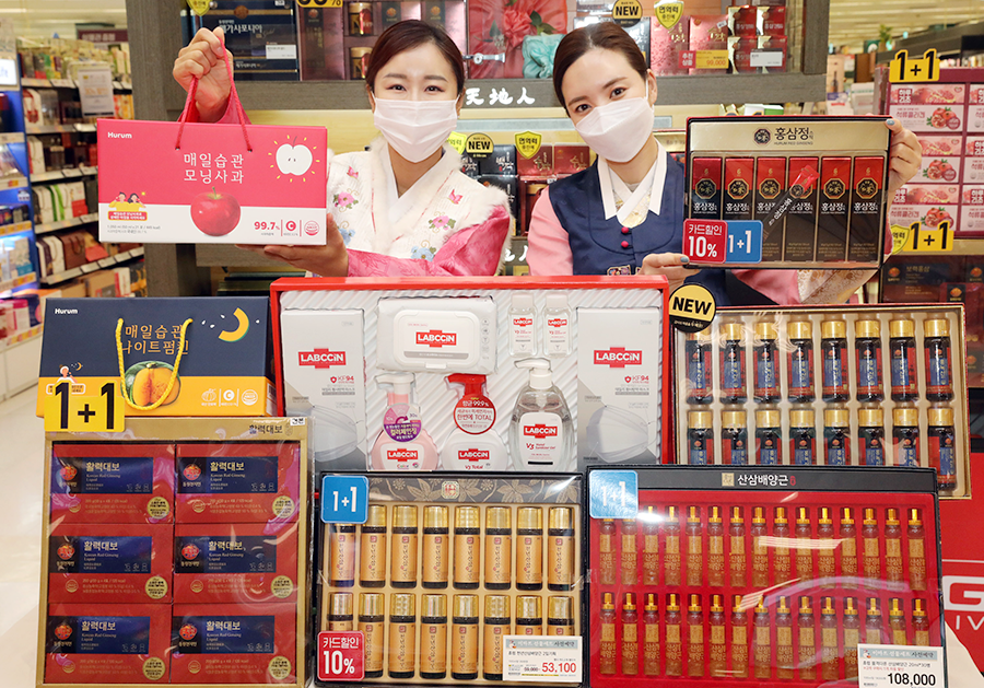건강식품 선물세트 구매 혜택도 대폭 확대했다. 이마트는’휴럼매일습관나이트펌킨/모닝사과’ 제품을행사카드로 구매 시 50% 할인된 9,900원에 판매하는 초저가 세트를 기획했으며, ‘녹십자웰빙 진액세트(49,900원)’ 5종과 ‘동원 천지인 세트(39,900원)’ 3종은‘1+1 프로모션’을 진행한다. 이 밖에도 고객 선호도가 높은 홍삼,산삼배양액 등 주요 상품들의 경우기획 물량을 최대 2배까지 늘렸으며,지난 추석 처음 선보인 ‘몸엔용 녹용세트 4종’ 등 신규 상품 운영을 확대했다.