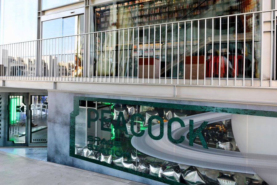피코크는 현대카드 뮤직 라이브러리 내 1층을 공상과학적 느낌의 이색 팝업스토어로 바꿔 이 곳에서 피코크 상품을 판매하고 신선한 고객 경험을 제공한다.