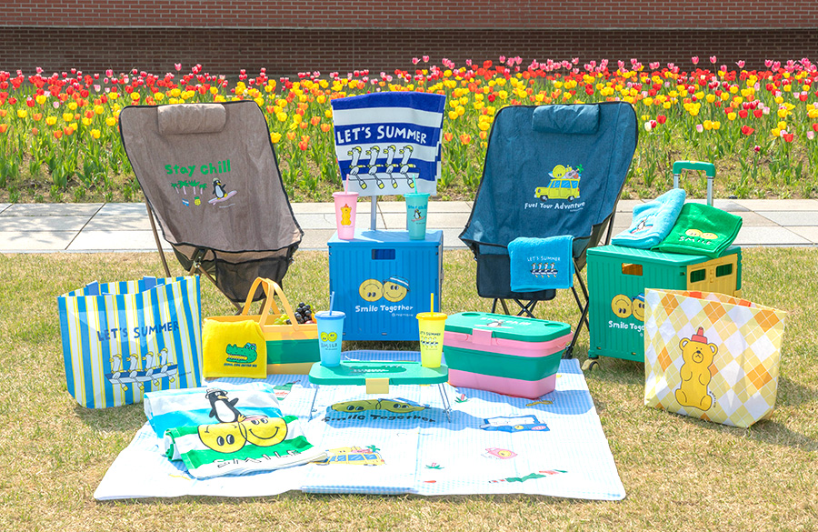 먼저 인기 일러스트레이터 ‘노이신’ 작가와 협업한 한정판 캠핑/피크닉 용품 18종을 선보인다. 주요 상품은 ‘폴더블 피크닉 박스’, ‘멀티 폴딩카트’, ‘비치 타월’, ‘미니 바스타월’ 등으로, 캠핑뿐 아니라 여름철 휴가 시즌까지 유용하게 활용할 수 있는 상품 위주로 다채롭게 구성됐다. *입점 점포에 한함, ‘멀티 폴딩카트’ 5/10, ‘리유저블컵’ 5월 중순 출시