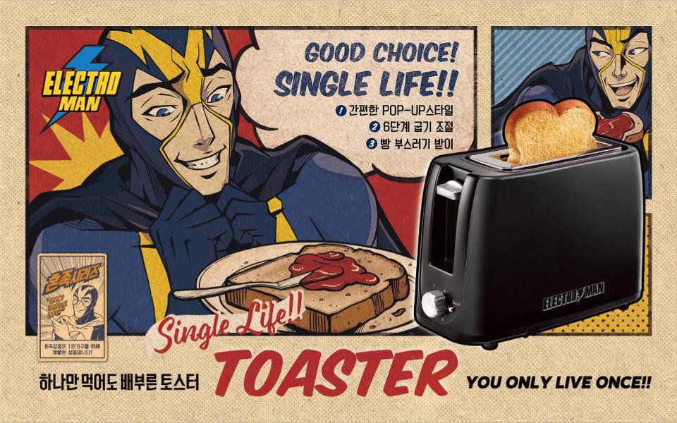 이를 토대로 일렉트로맨 가전주방은 제품 패키징에 일렉트로맨 웹툰을 적극 활용해 젊은 감성을 더했고, ‘입맛대로 한땀한땀 멀티그릴’, ‘바삭바삭 치즈줄줄 샌드위치 메이커’ 등 제품명에도 Fun한 요소를 가미했다.