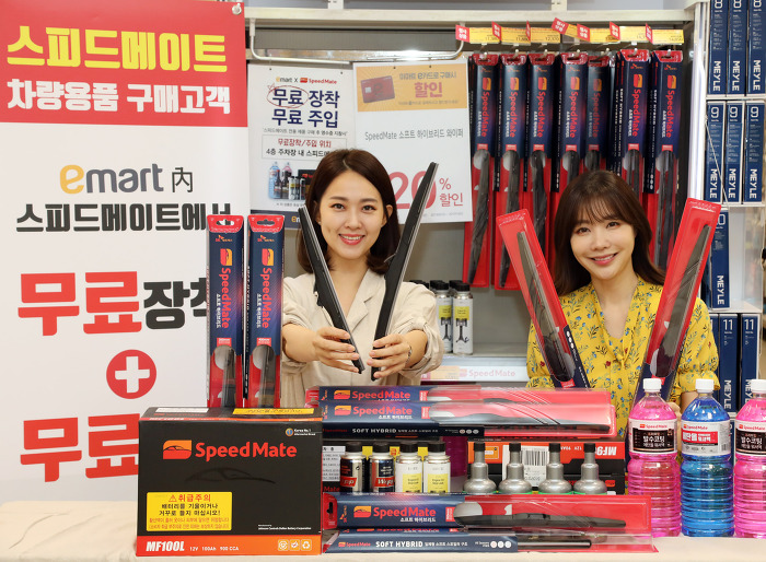 이마트는 스피드메이트가 입점한 전국 이마트 70개 매장에서 스피드메이트 와이퍼를 판매하고, 스피드메이트 상품은 구매 후 이마트 매장에 있는 스피드메이트 매장에서 무료장착이 가능하다.