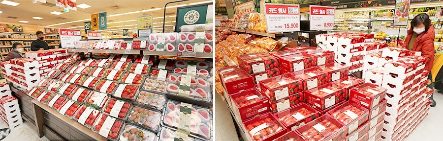 이마트가 이번 행사에 스마트팜 등 프리미엄 딸기를 전면에 내세운 것은 입춘(2월 4일) 이후 날씨가 따뜻해져도 높은 상품성을 유지하기 때문이다.
