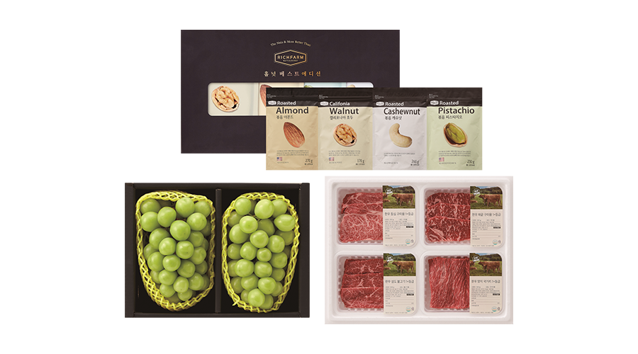 실속형 대표 상품으로 2~3만원대 사과, 배, 샤인머스캣, 황금향 과일 세트와 4~5만원대 호주산 소고기, 한우 세트 및 굴비 세트 등을 선보인다.