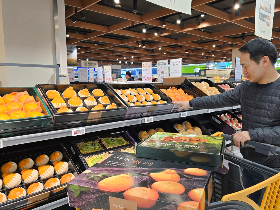 지난해 이마트 설 명절 선물세트 매출을 분석한 결과, 만감류 등 과일, 버섯, 인삼, 더덕 등 선물세트는 설 명절 직전 5일(25년 1월 24일~28일)동안 전체 선물세트 매출의 60% 이상 집중됐다. 특히 2.5kg 미만 소용량 과일 선물세트는 명절 직전 80% 이상 매출이 발생할 만큼 핸드캐리 선물세트 비중이 압도적으로 높다.