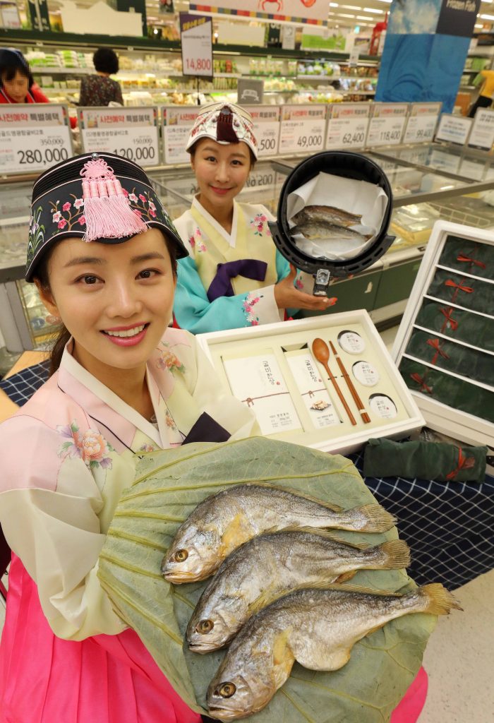이마트는 올해 추석을 앞두고 가장 전통적인 선물세트로 꼽히는 굴비를 선호하지 않는 젊은 고객들을 대상으로 ‘연잎 부세굴비세트(5미, 600g, 7만8000원)’, ‘찐 부세굴비 세트(5미, 700g, 6만8,000원)’, ‘굴비 한상 세트(굴비 300g(3미), 굴비채 100g, 고추장굴비 100g*3팩, 16만5000원)’ 등의 혁신 상품을 처음으로 선보인다.