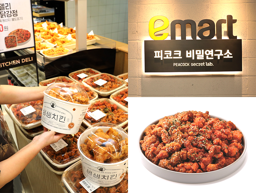 이마트는 닭강정에 이어 9/29일(목) 피코크 비밀연구소가 만든 ‘생생 치킨’을 선보인다. 생생 치킨 역시 피코크 비밀연구소가 다양한 실험을 거쳐 비법 파우더(쌀가루 + 15종의 향신료)를 사용, 치킨 본연의 진한 풍미를 내도록 했다.