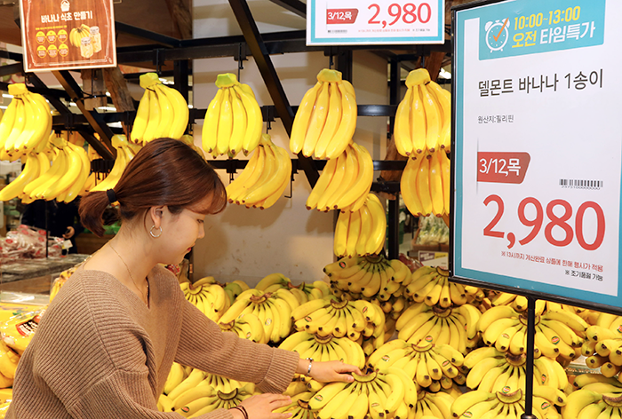 이에 이마트가 지난 11~12일 이틀간 오전 타임세일 판매를 진행해본 결과 타임세일 상품 매출이 50% 이상 증가한 것으로 나타났다. 11일(수) 타임특가로 판매했던 ‘이맛쌀 20kg’은 13시 이전 매출과 고객수가 각각 직전 주 대비 55.9%, 63.7% 증가했다. 12일(목) 행사 상품이었던 ‘델몬트 바나나 8수’는 신장 폭이 더 컸다. 13시 이전 매출과 고객수가 직전 주 대비 각각 77.9%, 106.4%나 증가했다.