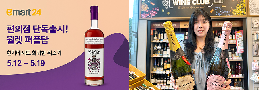 이마트24가 판매하는 상품은 ▲윌렛 패밀리 에스테이트 버번 8년(퍼플탑) ▲에도네 그랑 뀌베 ▲에도네 로제 그랑 뀌베 등 3종이다.