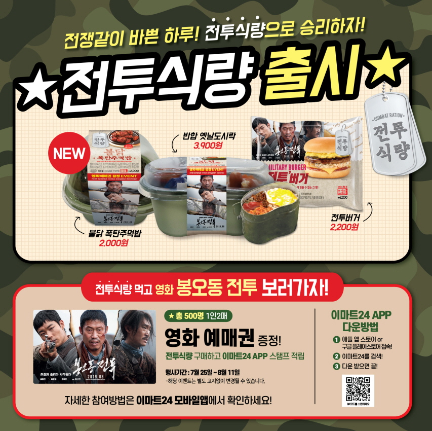 MEDIA 글자 크기 보통 크게 아주 크게 공유하기 페이스북 X 카카오톡 링크 복사 링크 복사됨 도구 보기 이미지 다운로드 이마트24, ‘봉오동전투’ 모티브로 문화마케팅! 2019.07.23 이마트24