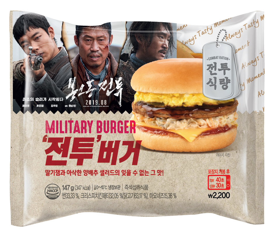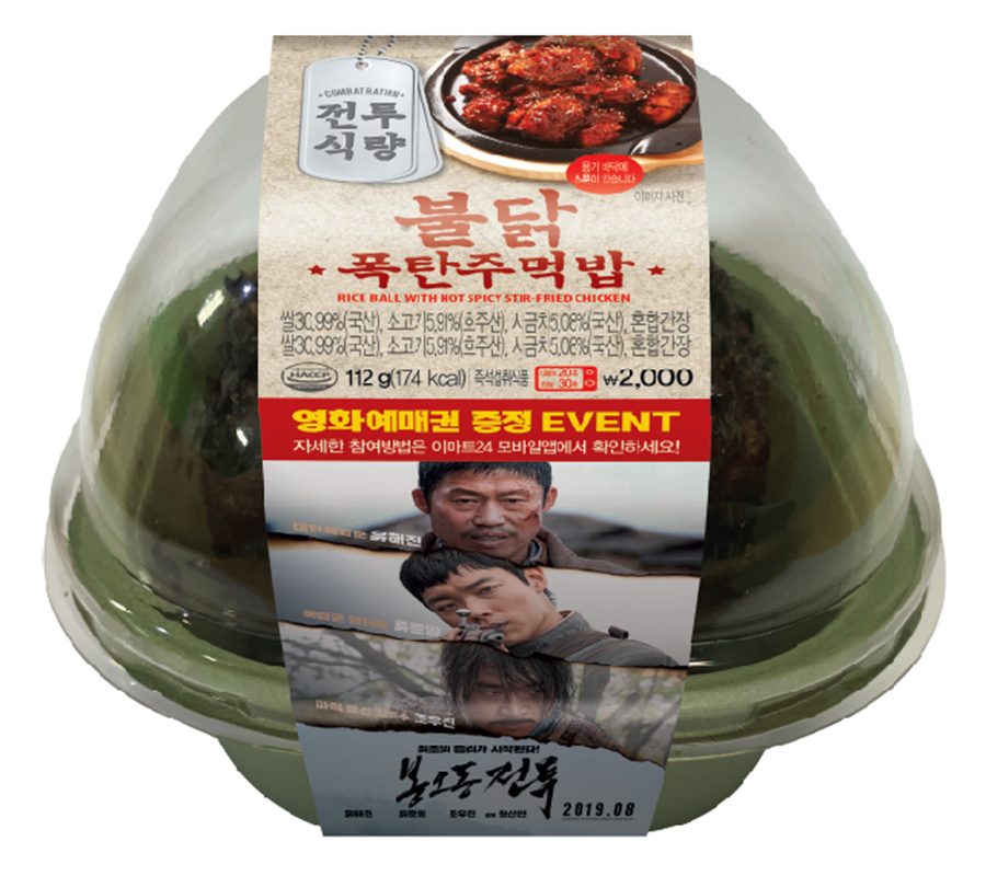 영화 스토리를 반영해 전쟁터에서 먹는 전투식량을 콘셉트로 했으며, 바쁘고 치열하게 살아가는 하루를 ‘전쟁터’에 비유한다는 점에서 착안해, 전투식량을 먹고 힘내자는 재미있는 의미도 담겨있다.