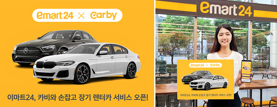 이마트24는 이달 17일(목)부터 국산∙수입차 온라인 판매 플랫폼 ‘카비(Carby)’와 손잡고 장기 렌터카(통상 2~5년간 빌려서 쓰는 차) 서비스를 선보인다.