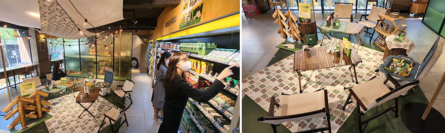 숲속 캠핑장을 방불케 하는 해당 팝업 스토어는 캠핑용품 외에 ‘솟솟’과 상록수 로고를 활용한 다양한 상품도 선보인다.