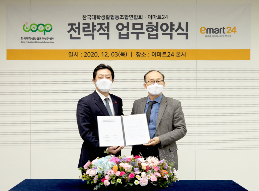 이마트24와 전국 대학생활협동조합(이하 대학생협)은 이달 3일(수, 오늘) 오후 3시, 이마트24 본사 대회의실에서 ‘캠퍼스 편의점 혁신을 위한 업무협약’(이하 MOU)을 체결한다. 대학생협은 대학 내 구성원인 학생, 교원, 직원이 함께 캠퍼스 내 복지매장을 운영하며 복지 증진을 도모하는 협동조합이다.