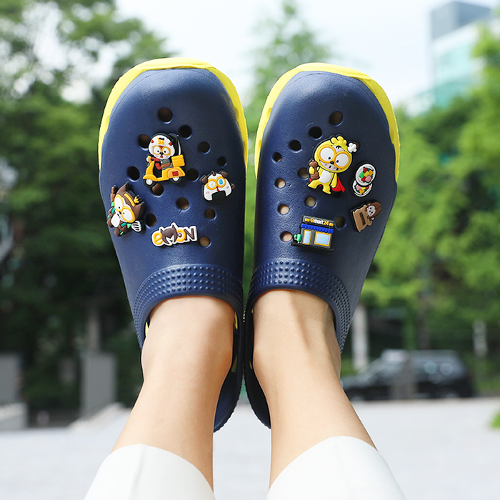 e몬 캐릭터 신발 액세서리는 고무 신발의 구멍에 하나씩 끼워 꾸밀 수 있도록 만든 e몬 캐릭터 굿즈다.