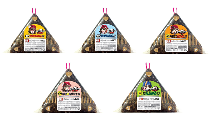 5종의 삼각김밥 패키지에는 컴프야2021 캐릭터를 넣어 아이템을 품은 삼각김밥임을 알린다. 투머치매콤비빔참치삼각김밥, 투머치비빔참치마요삼각김밥은 각 1200원,더빅불고기전주비빔삼각김밥, 더빅스팸김치볶음삼각김밥, 더빅참치마요삼각김방은 각 1400원이다.
