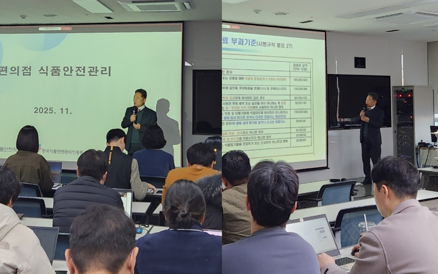 이번 식품안전교육은 ▲ 편의점 식품판매 형태와 종류 ▲ 영업신고와 식품안전관리 정책 ▲ 휴게음식점 및 식품자동판매기 시설 기준 ▲ 지도·점검 시 위생 점검사항 ▲ 휴게음식점 및 식품자동판매기 주요 위반사례 순으로 진행됐다.