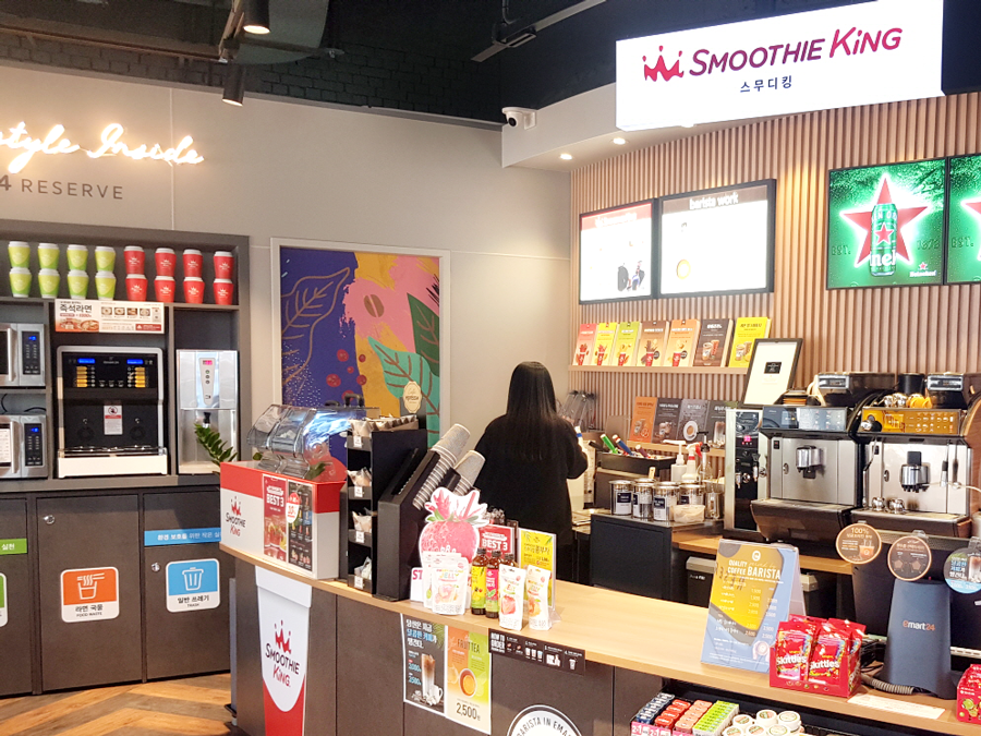 이마트24는 스무디킹과의 협의를 통해 올해 3월부터 카운터 내 공간에서 스무디킹을 제조/판매 할 수 있는 모델을 확대함으로써 가맹점 추가 매출 증대 지원에 나섰다. ‘이마트24 X 스무디킹’ 모델은 한 경영주가 이마트24 가맹계약과는 별개로 스무디킹과 가맹계약을 체결하는 방식으로, 별도 스무디킹 매장을 오픈하는데 발생되는 투자금을 대폭 줄이면서 추가 수익을 창출할 수 있는 효율화 매장이다. 스무디킹 매장은 가맹점의 호응을 얻으며 가맹점 확대 발표 후 영업일 기준 매일 1개씩 늘어나며 올해 200점 돌파를 앞두고 있다.