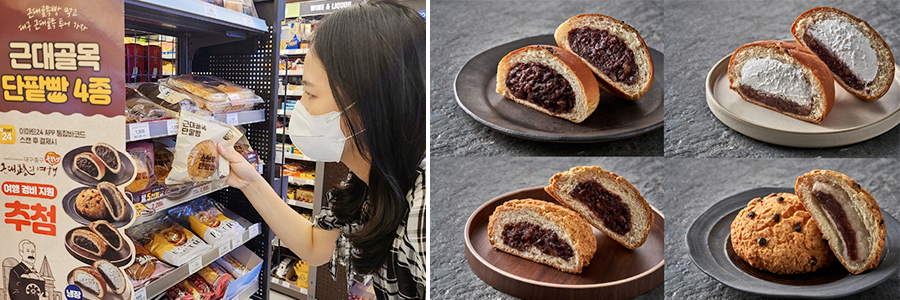 이마트24가 판매하는 근대골목 단팥빵(2,200원)/크림단팥빵(3,300원)/소보루단팥빵(2,800원)/콩떡콩떡(2,800원)은 대구근대골목단팥빵의 시그니처인 팥앙금을 일체의 보존료 없이 솥에서 직접 끓인 단팥으로 만들어 고소한 단맛과 깊은 풍미는 물론 부드럽게 씹히는 식감까지 느낄 수 있다.