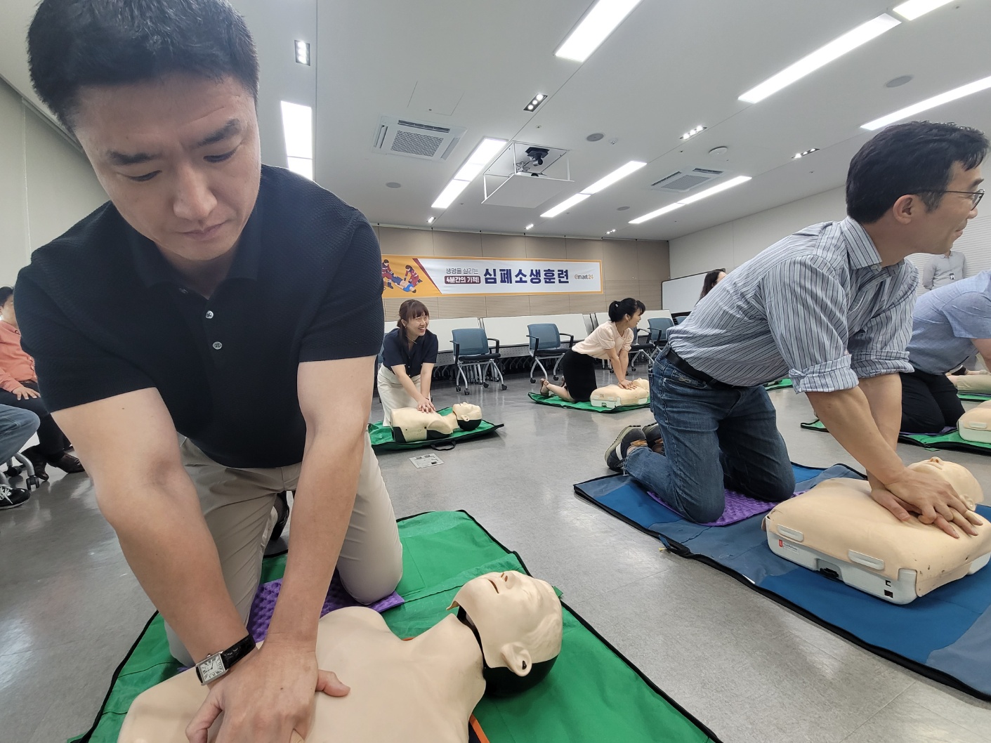 MEDIA 글자 크기 보통 크게 아주 크게 공유하기 페이스북 X 카카오톡 링크 복사 링크 복사됨 도구 보기 이미지 다운로드 이마트24, 직원 심폐소생술 교육훈련 실시 2024.06.21 이마트24