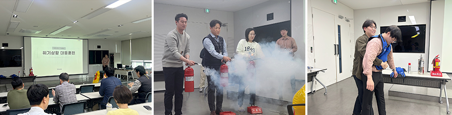 이번 교육 훈련은 사업장 내에서 화재나 응급상황 발생 등의 위기상황에 신속히 대처할 수 있도록 ▲소화기∙소화전 사용법 ▲대피요령 ▲응급처치법 등 이론, 영상 교육과 함께 ▲소화기 실사 ▲ 기도폐쇄 응급처치(하임리히법) 실습 등으로 구성했다.