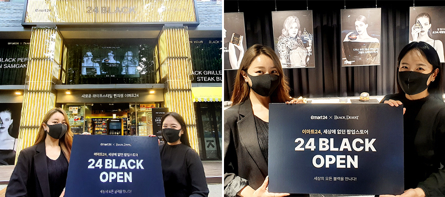 이마트24는 MMORPG*‘검은사막’, 명품 플랫폼 ‘머스트잇’과 손잡고 프리미엄 블랙 콘셉트 팝업스토어 ‘24BLACK’을 선보였다. (서울특별시 종로구 삼청로 68)