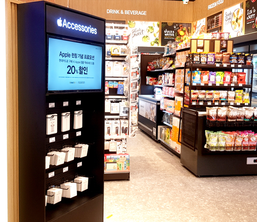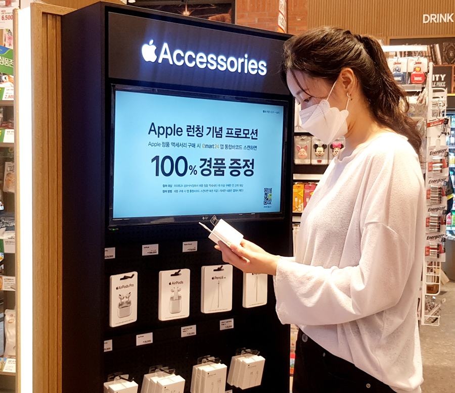 Apple 전용 판매대에서는 모니터를 통해 판매 중인 정품 액세서리 상품 소개와 이벤트 영상이 송출되며, 에어팟 프로(AirPods Pro), 에어팟(AirPods), 애플펜슬(Apple Pencil), 이어팟(EarPods), 어댑터, 케이블 등 총 12종의 Apple 정품 액세서리를 판매한다. 이마트24는 20개 매장에서 12개 상품을 판매한 후, 판매 데이터를 바탕으로 운영 매장과 상품 종류를 지속 늘려 나간다는 방침이다.