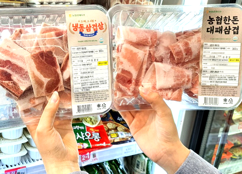 올해 이마트24 냉동육 매출 순위를 살펴보면 1위 ‘농협국산대패삼겹살’, 2위 ‘농협그시절 냉동삼겹살’ 등 1위부터 5위까지 냉동삼겹살 4종이 이름을 올리며 냉동육 매출을 이끌었다. 4위에 우육인 ‘선서인더가든 블랙앵거스 찹스테이크’가 유일하게 베스트5에 포함됐다.