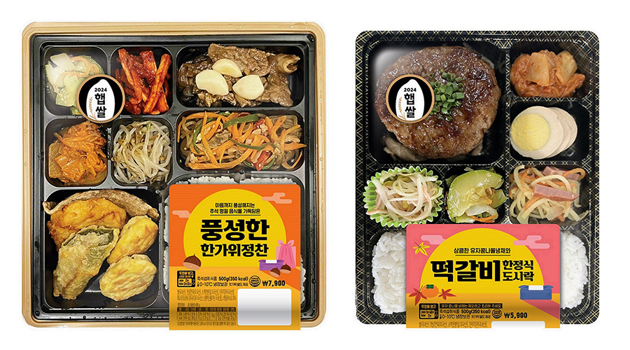 햅쌀이 적용된 명절도시락 2종에는 ‘2024년 햅쌀’ 스티커가 부착돼 있다. 수확한 직후의 햅쌀은 수분 함량이 높고, 찰기가 있어 밥맛의 풍미가 좋은 것이 특징이다.